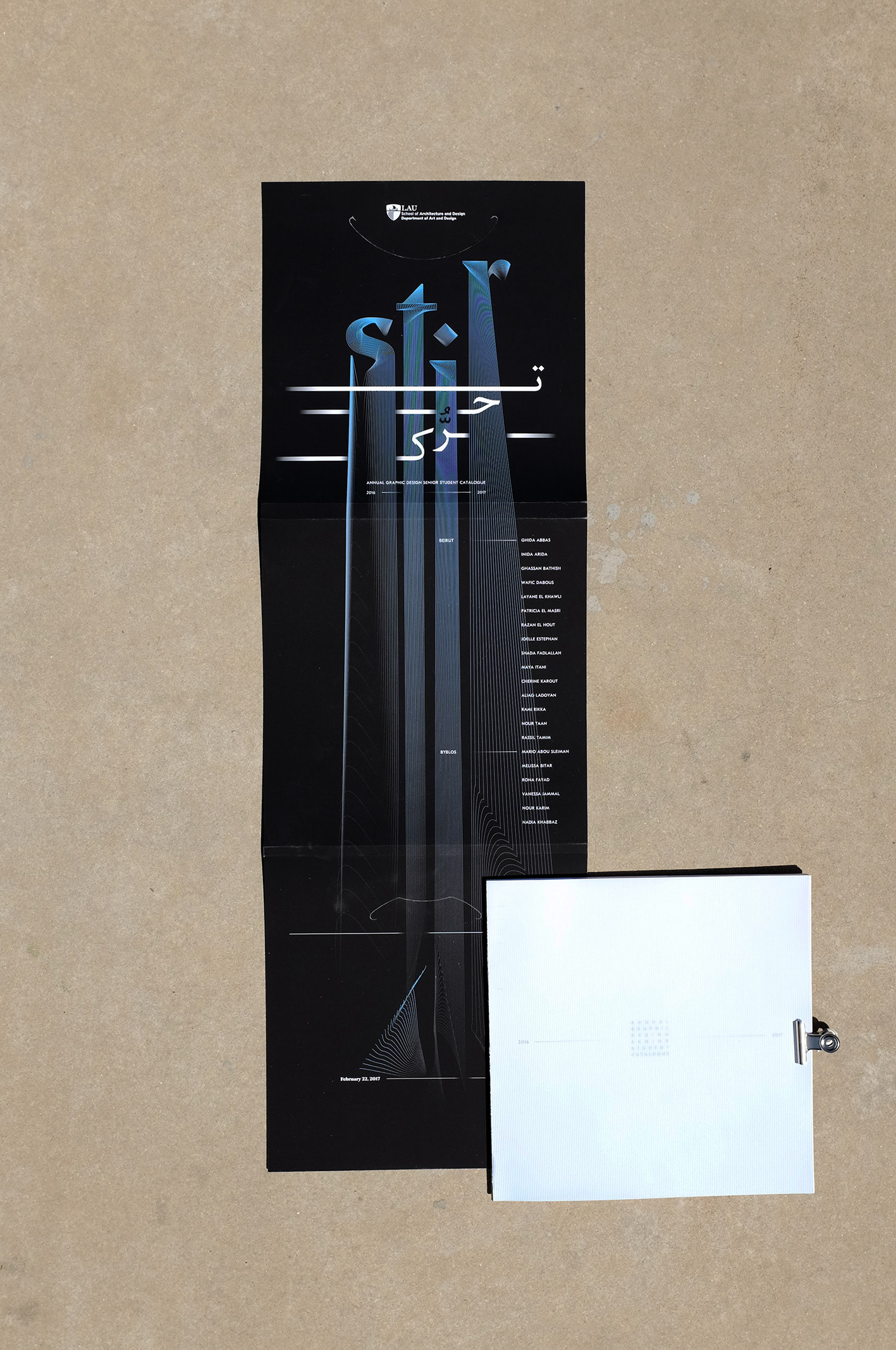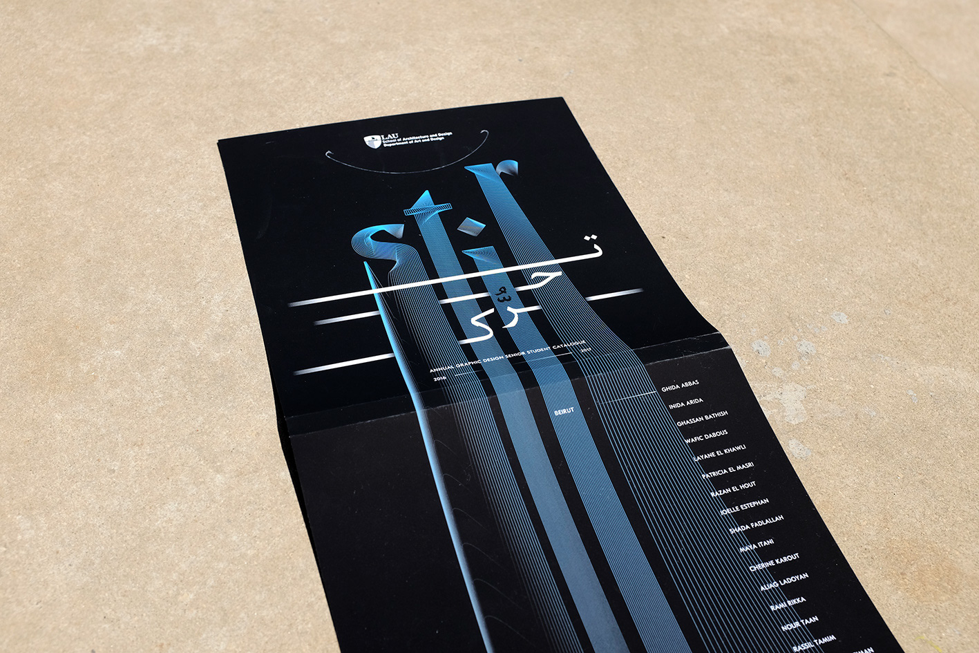 "Stir" is a selection of twenty graduating graphic design students’ works from Beirut and Byblos LAU campuses. It is the culmination of three-and-a-half years of thinking, training, and developing new concepts for a variety of services and products using typography, illustration, technical skills and thought-provoking ideas to produce innovative work. Supervised by Gökhan Numanoğlu, graphic design assistant professor, the concept for this year’s catalog was developed by Georges Hanna and Rayan Tannir, second year, graphic design students, and layout was executed by Charbel Harb.